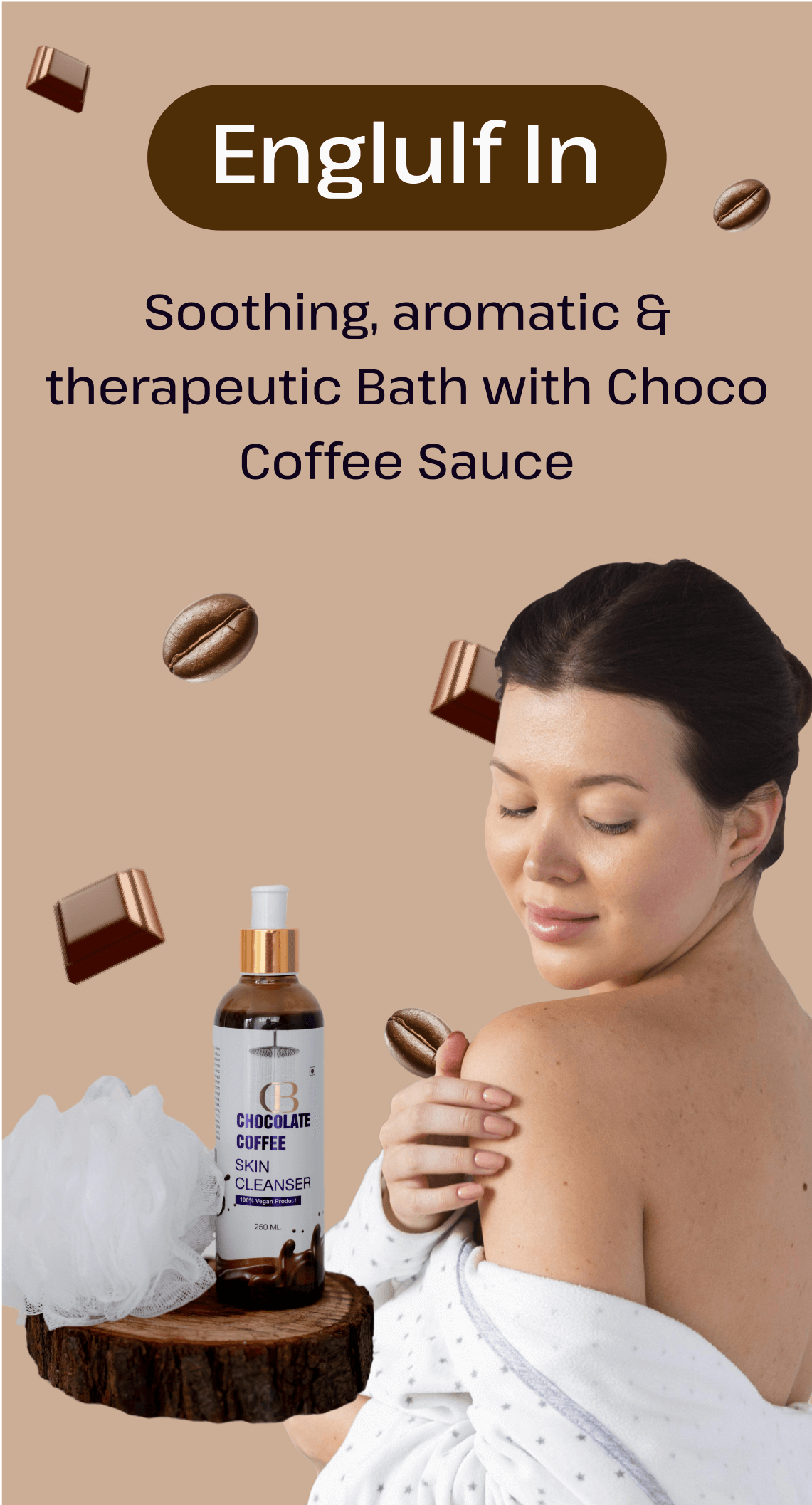 Our chocolate body wash is your secret to glowing skin. It gently removes stubborn tan and dullness, exfoliating away dead skin cells to reveal a brighter, more even complexion. With every wash, you’ll notice your skin becoming softer and glowing with natural radiance.