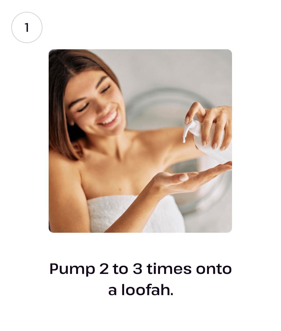 Wet your skin, apply the body wash to a loofah, and massage in circular motions. Let it sit for 1-2 minutes for maximum benefits before rinsing thoroughly. Enjoy your revitalizing shower!